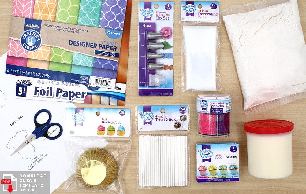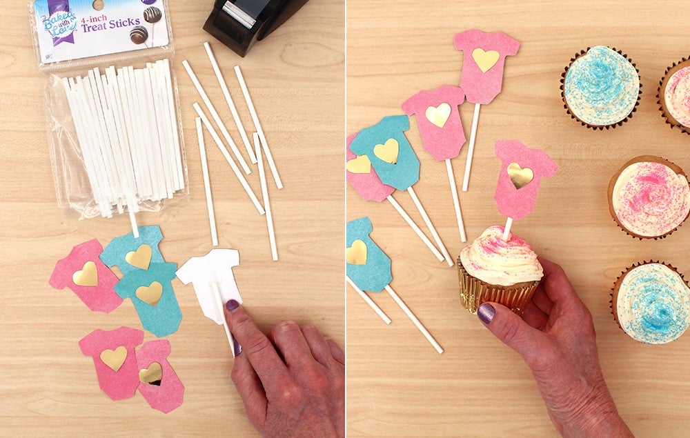 Tape Treat Sticks to the back of the onesies to create the cupcake toppers.