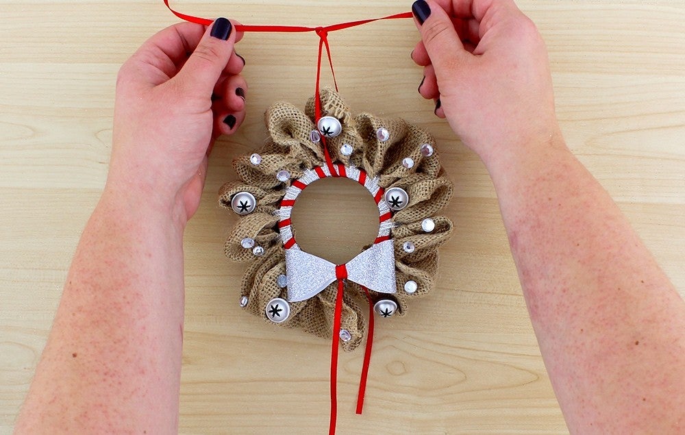 Use red ribbon to create a loop for hanging your decoration.