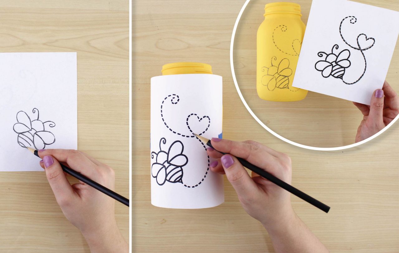 Download and print the supplied Bee Template and trace the back with a pencil. TIP: Hold the paper up to the window, with the printed image facing away from you.